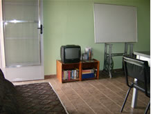 4) Salão com mesas de pimbolim, ping-pong e sala de música.